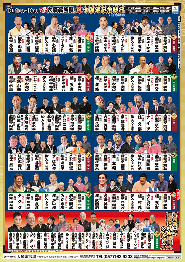 東海地方唯一の常設寄席、大須演芸場が地元企業や商店街、有志の尽力で再生されてから10年。10月1日~10日まで「新生 大須演芸場 祝 十周年記念興行」が開催されました。